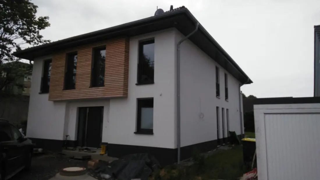 Bei diesem Bauvorhaben wurden Innenputz-, Spachtel-, Maler- und Außenputzarbeiten im abgestimmten System ausgeführt. Die Innenflächen wurden mit Gipsputz in Qualitätsstufe Q2 hergestellt und durch Spachtelarbeiten in Qualitätsstufe Q3 sowie Malervlies mit Dispersionsbeschichtung ergänzt, während die Fassade als mineralischer Putzaufbau mit Unterputz, Armierungsschicht mit Gewebeeinlage, Scheibenputz (3 mm) und abschließendem Fassadenanstrich ausgeführt wurde.